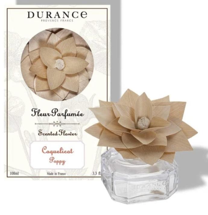 Deze mooie roos van Durance heeft dezelfde werking als geurstokjes; het lont van de roos zuigt vol parfum en verspreid een subtiele geur in uw kamer.