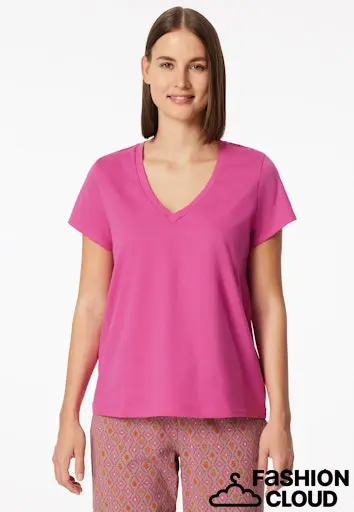 fuchsia t-shirt voor dames, uit de populaire SCHIESSER "Mix+ Relax" collectie, met diepere v-hals, korte mouwen